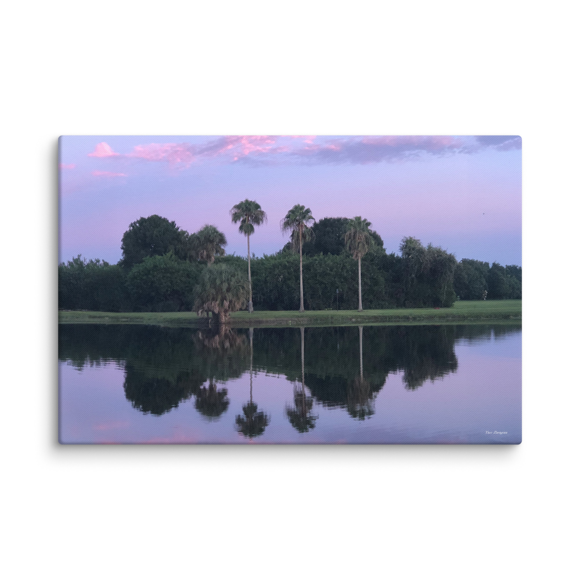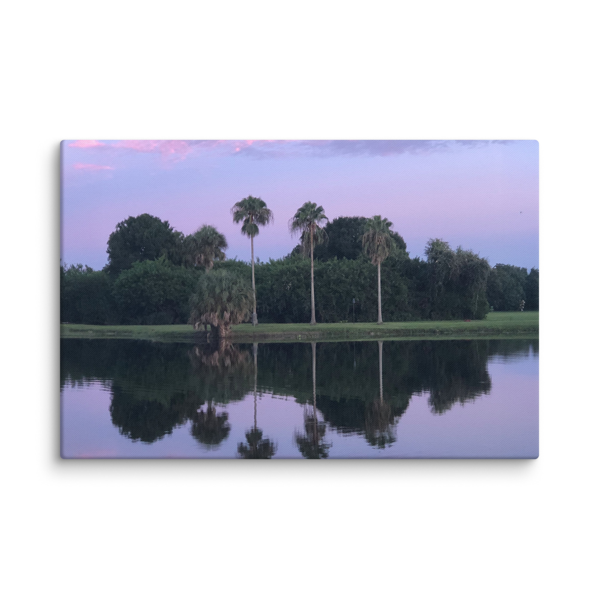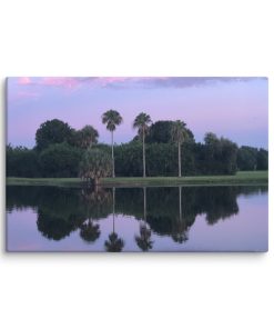 A quiet moment captured at sunset, 3 Palms invites you to pause, breathe, and reflect. The trio of tall palms mirrored perfectly on still water creates a natural sense of balance and calm. The lavender sky and soft pink clouds add a dreamy touch, making this piece a peaceful centerpiece for any space.
