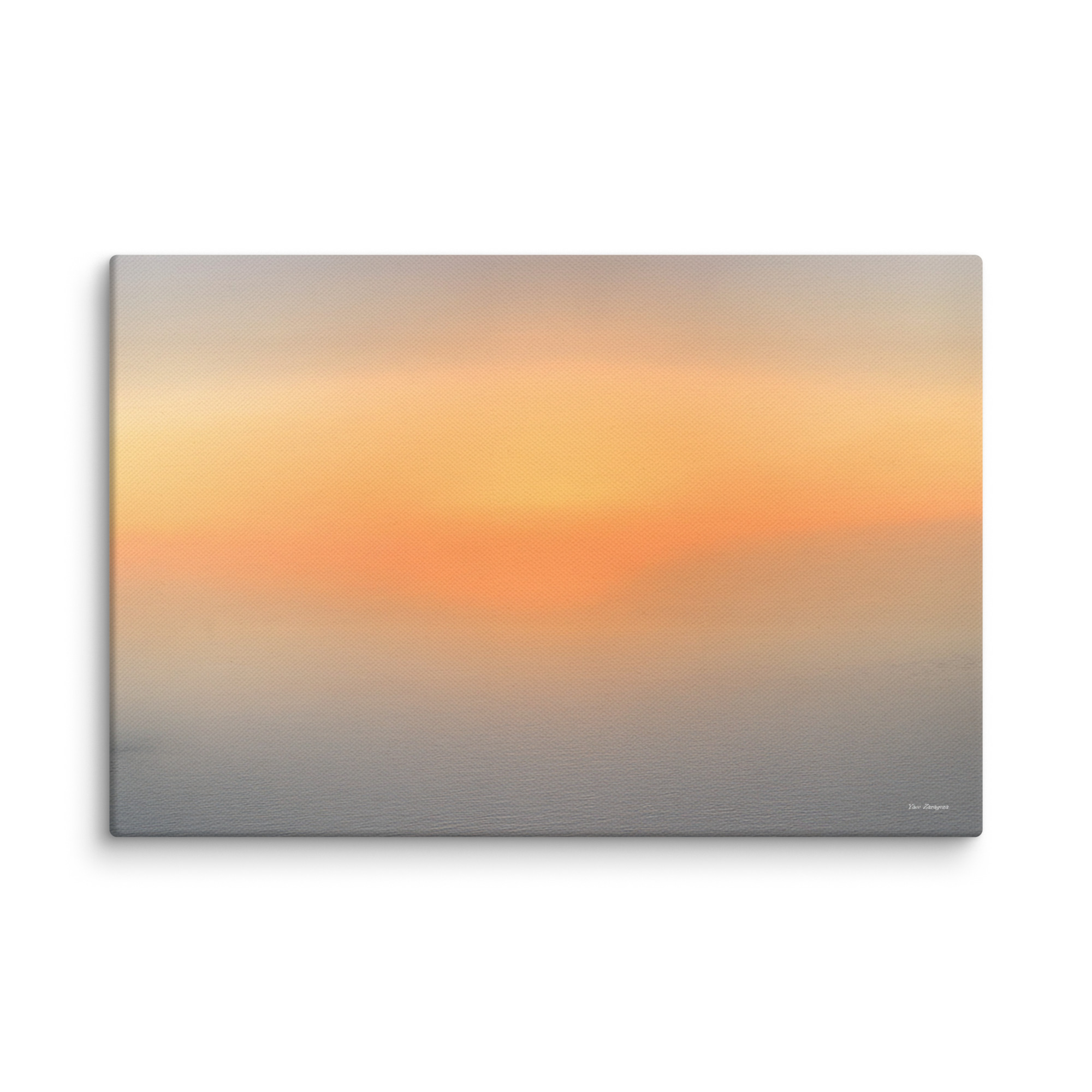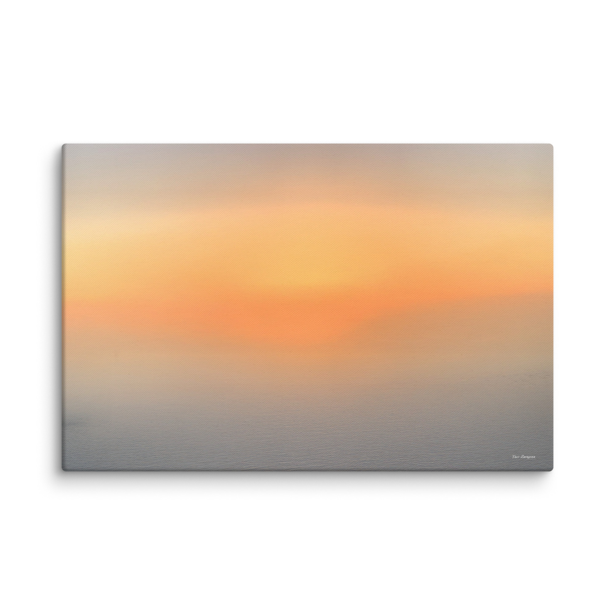 Embrace the beauty of the unseen with Morning Fog, a dreamlike abstract that captures the delicate blur between sky and water at dawn. With soft washes of orange and blue, this piece evokes the quiet stillness of early morning—when the world is wrapped in mist and everything feels suspended in time.